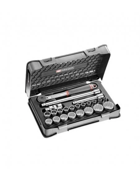• 19 x douilles 1/2″ 12 pans métriques : S. 8 – 9 – 10 – 11 – 12 – 13 – 14 – 15 – 16 – 17 – 18 – 19 – 21 – 22 – 23 – 24 – 27 – 30 – 32 mm.