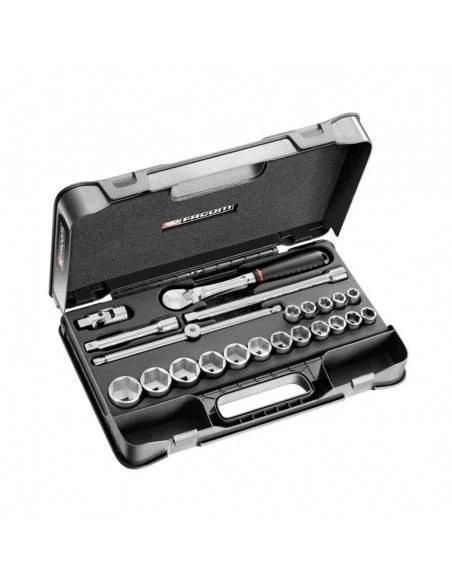• 17 x douilles 1/2″ 6 pans en pouces : S.H 3/8′ – 7/16′ – 1/2′ – 9/16′ – 19/32′ – 5/8′ – 21/32′ – 11/16′ – 3/4′ – 13/16′ – 7/8′ – 15/16′ – 1′ – 1’1/16 – 1’1/8 – 1’3/16 – 1’1/4.
