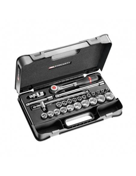• 21 x douilles 1/2″ 6 pans métriques : S.H 8 – 9 – 10 – 11 – 12 – 13 – 14 – 15 – 16 – 17 – 18 – 19 – 21 – 22 – 23 – 24 – 27 – 28 – 29 – 30 – 32 mm.